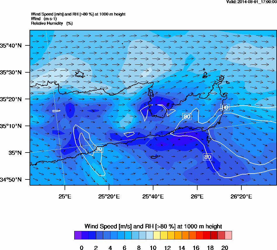 Graph 3: arw073.png - Wind Speed [m/s] and RH [>80%] at 1000 m height