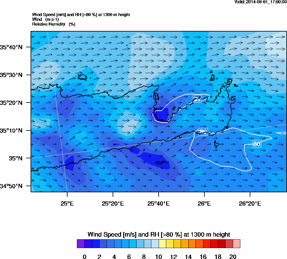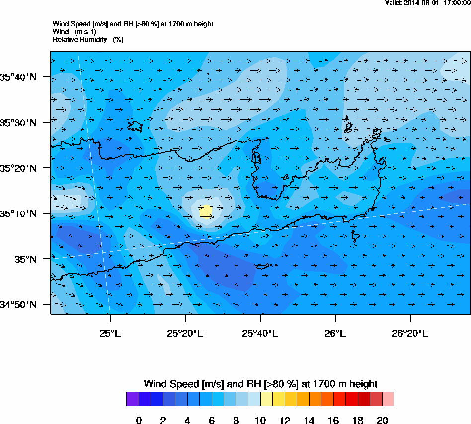 Graph 5: arw075.png - Wind Speed [m/s] and RH [>80%] at 1700 m height